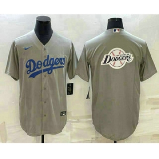 Men's Los Angeles Dodgers Grey Team Big Logo Cool Base Stitched Baseball Jersey