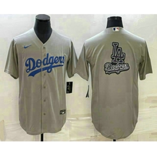 Men's Los Angeles Dodgers Grey Team Big Logo Cool Base Stitched Baseball Jersey1