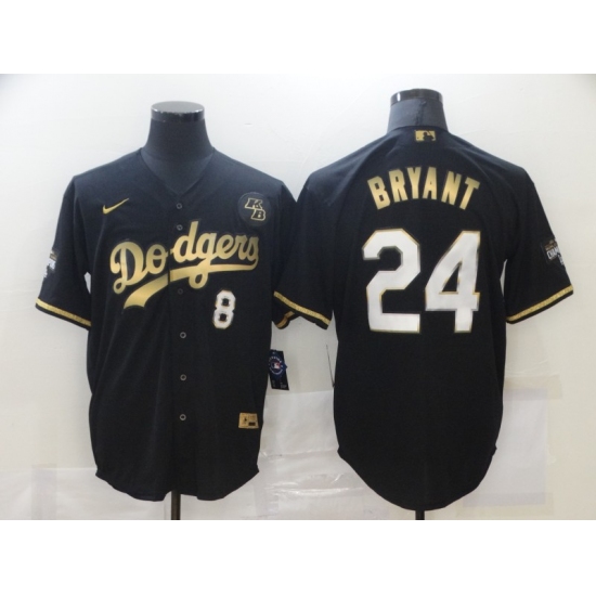Men's Los Angeles Dodgers #24 Kobe Bryant Black Gold Cool Base Stitched Jersey