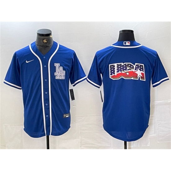 >Men's Los Angeles Dodgers Team Big Logo Blue Cool Base Stitched Baseball Jersey