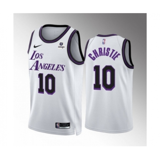 >Men's Los Angeles Lakers #10 Max Christie White City Edition Stitched Basketball Jersey
