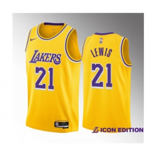 Men's Los Angeles Lakers #21 Maxwell Lewis Yellow 2023 Draft Icon Edition Stitched Basketball Jersey