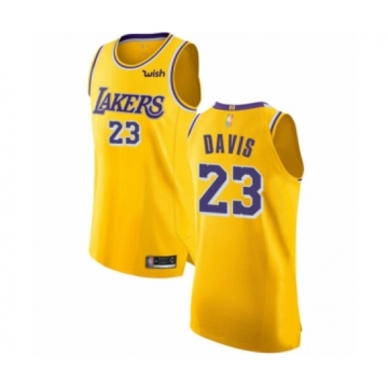 >Men's Los Angeles Lakers #23 Anthony Davis Authentic Gold Basketball Jersey - Icon Edition