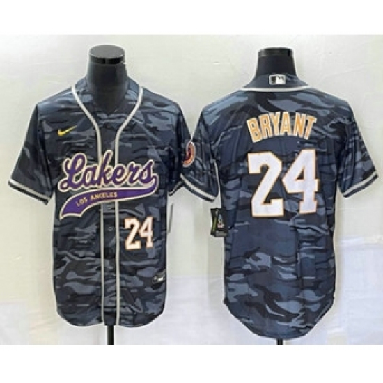 Men's Los Angeles Lakers #24 Kobe Bryant Black Camo Cool Base Stitched Baseball Jersey