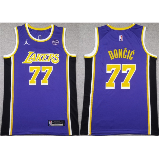 Men's Los Angeles Lakers #77 Luka Doncic Puple 2025 Stitched Basketball Jersey