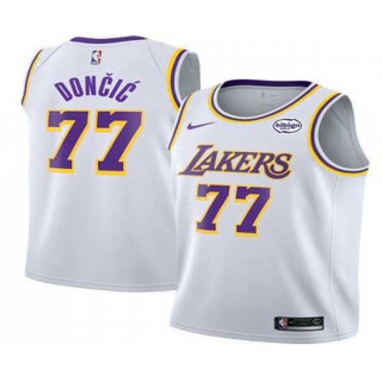 >Men's Los Angeles Lakers #77 Luka Doncic White 2025 Association Edition Stitched Jersey