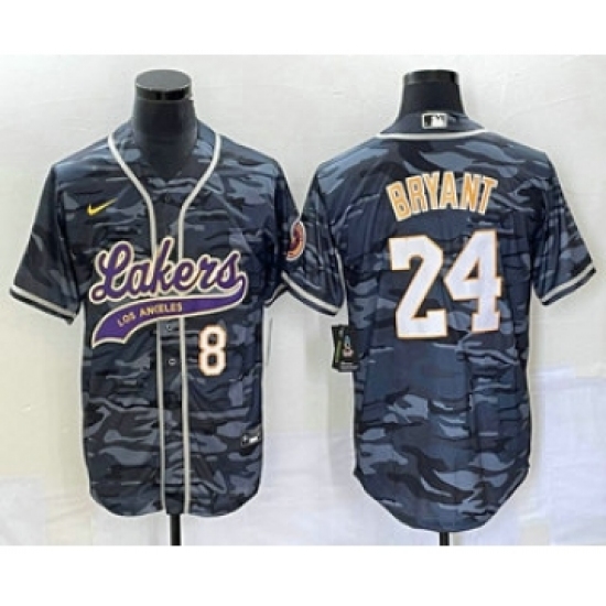 Men's Los Angeles Lakers #8 #24 Kobe Bryant Black Camo Cool Base Stitched Baseball Jersey