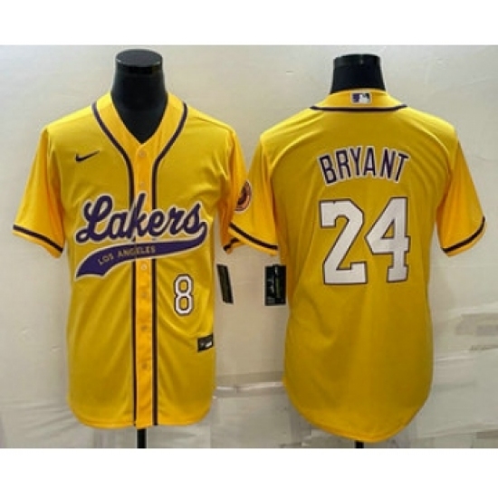 Men's Los Angeles Lakers #8 #24 Kobe Bryant Yellow With Cool Base Stitched Baseball Jersey