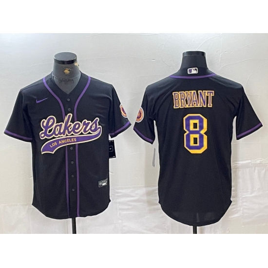 Men's Los Angeles Lakers #8 Kobe Bryant Black Cool Base Stitched Baseball Jersey