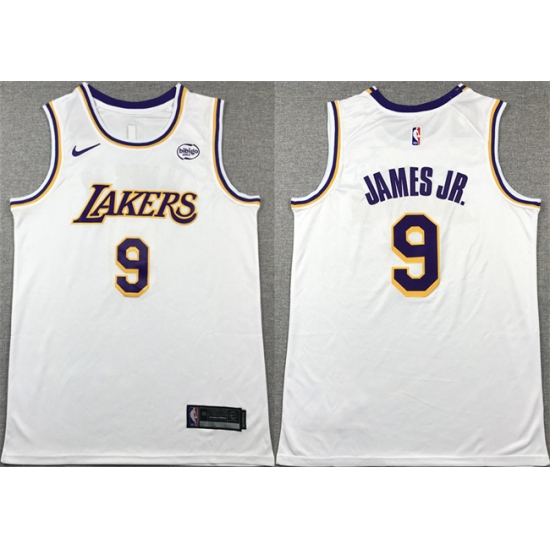 Men's Los Angeles Lakers #9 Bronny James Jr. White 2024 Draft Icon Edition Stitched Basketball Jersey