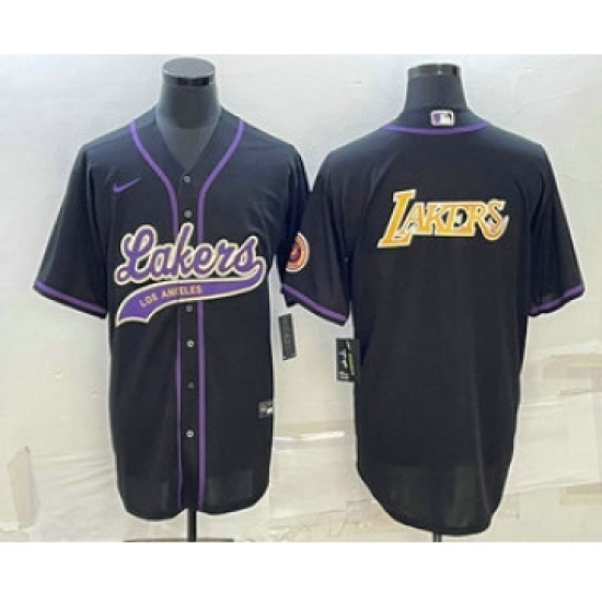 Men's Los Angeles Lakers Black Big Logo Cool Base Stitched Baseball Jerseys