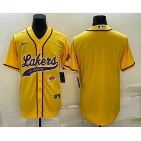 Men's Los Angeles Lakers Yellow Big Logo Cool Base Stitched Baseball Jerseys