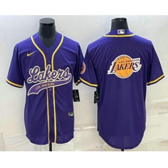 Men's Los Angeles Lakers Purple Team Big Logo Cool Base Stitched Baseball Jersey