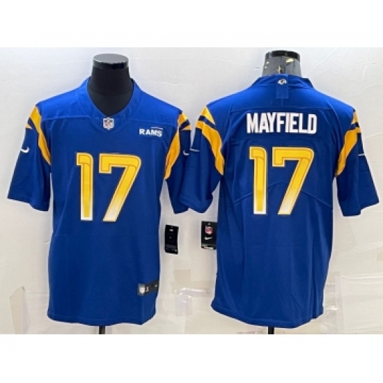 >Men's Los Angeles Rams #17 Baker Mayfield 2022 Blue Vapor Untouchable Limited Stitched Jersey