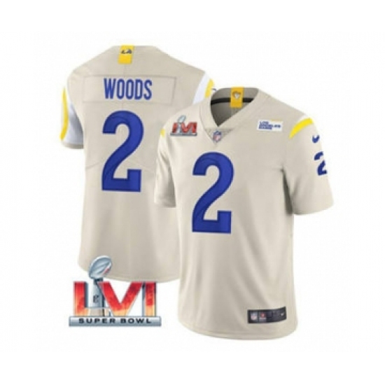 Men's Los Angeles Rams #2 Robert Woods Bone 2022 Super Bowl LVI Vapor Limited Stitched Jersey