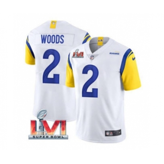 Men's Los Angeles Rams #2 Robert Woods White 2022 Super Bowl LVI Vapor Limited Stitched Jersey