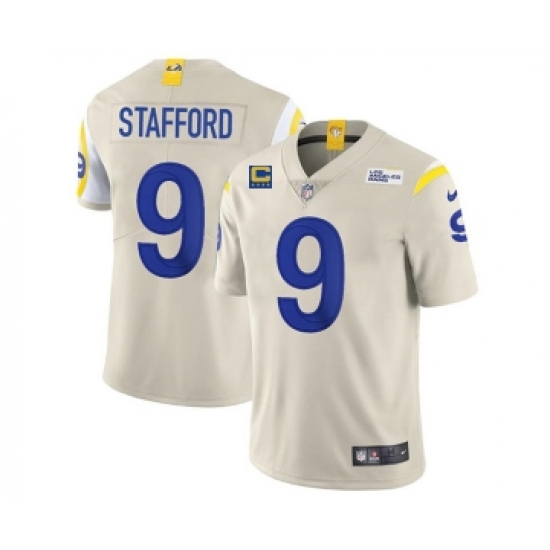 Men's Los Angeles Rams 2022 #9 Matthew Stafford Bone White With 4-star C Patch Stitched NFL Jersey