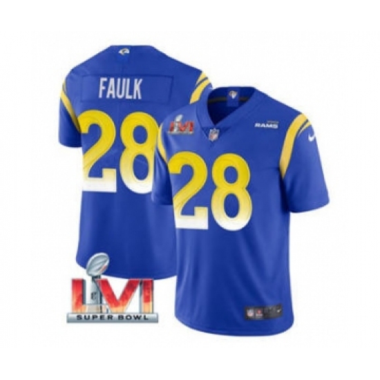 Men's Los Angeles Rams #28 Marshall Faulk Royal 2022 Super Bowl LVI Vapor Limited Stitched Jersey