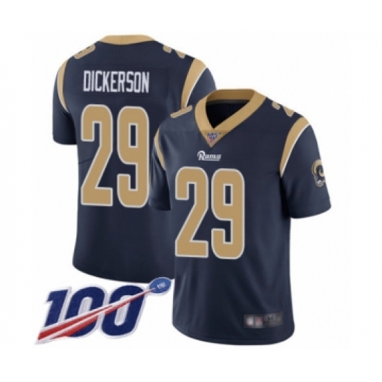 Men's Los Angeles Rams #29 Eric Dickerson Navy Blue Team Color Vapor Untouchable Limited Player 100th Season Football Jersey