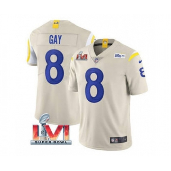 Men's Los Angeles Rams #8 Matt Gay Bone 2022 Super Bowl LVI Vapor Limited Stitched Jersey