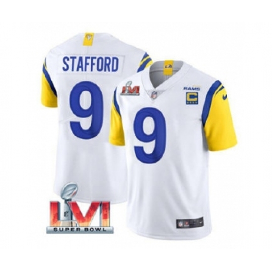 Men's Los Angeles Rams #9 Matthew Stafford White 2022 With C Patch Super Bowl LVI Vapor Limited Jersey
