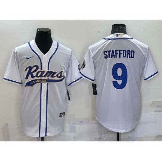 Men's Los Angeles Rams #9 Matthew Stafford White Stitched Cool Base Nike Baseball Jersey