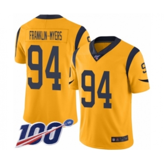 >Men's Los Angeles Rams #94 John Franklin-Myers Limited Gold Rush Vapor Untouchable 100th Season Football Jersey
