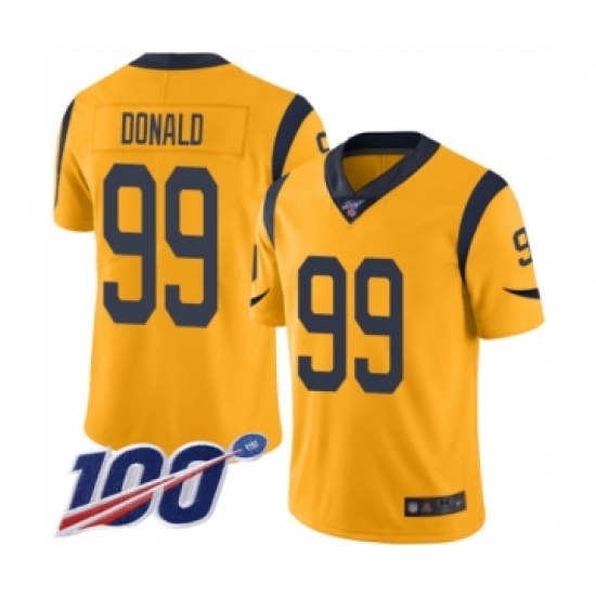 >Men's Los Angeles Rams #99 Aaron Donald Limited Gold Rush Vapor Untouchable 100th Season Football Jersey