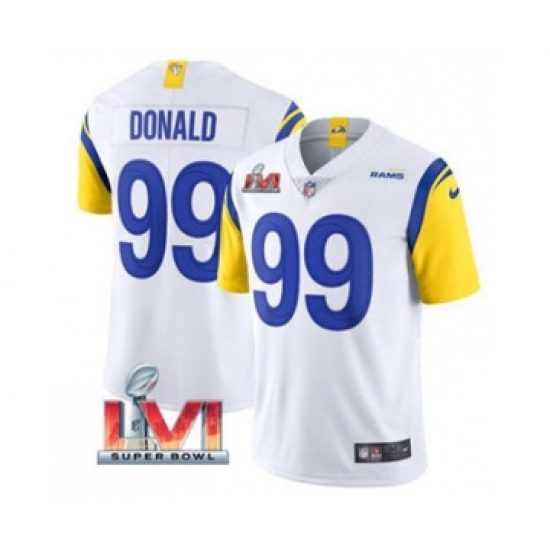Men's Los Angeles Rams #99 Aaron Donald White 2022 Super Bowl LVI Vapor Limited Stitched Jersey
