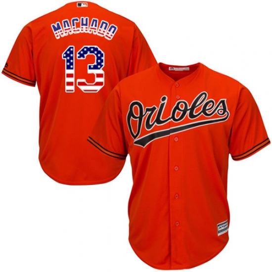 Home>MLB>Baltimore Orioles>Manny Machado>Men's Majestic Baltimore Orioles #13 Manny Machado Replica Orange USA Flag Fashion MLB Jersey