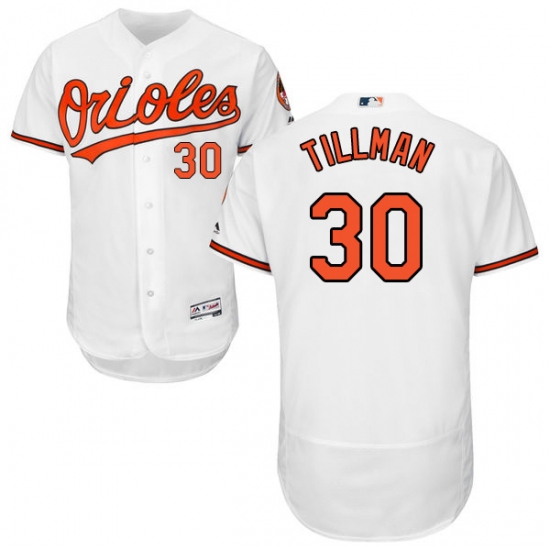 Home>MLB>Baltimore Orioles>Chris Tillman>Men's Majestic Baltimore Orioles #30 Chris Tillman White Home Flex Base Authentic Collection MLB Jersey
