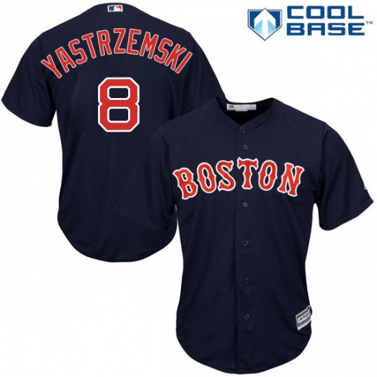 Men's Majestic Boston Red Sox #8 Carl Yastrzemski Replica Navy Blue Alternate Road Cool Base MLB Jersey