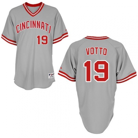 Men's Majestic Cincinnati Reds #19 Joey Votto Authentic Grey 1991 Turn Back The Clock MLB Jersey