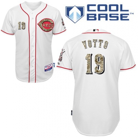 Men's Majestic Cincinnati Reds #19 Joey Votto Authentic White USMC Cool Base MLB Jersey