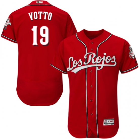 Home>MLB>Cincinnati Reds>Joey Votto>Men's Majestic Cincinnati Reds #19 Joey Votto Red Los Rojos Flexbase Authentic Collection MLB Jersey