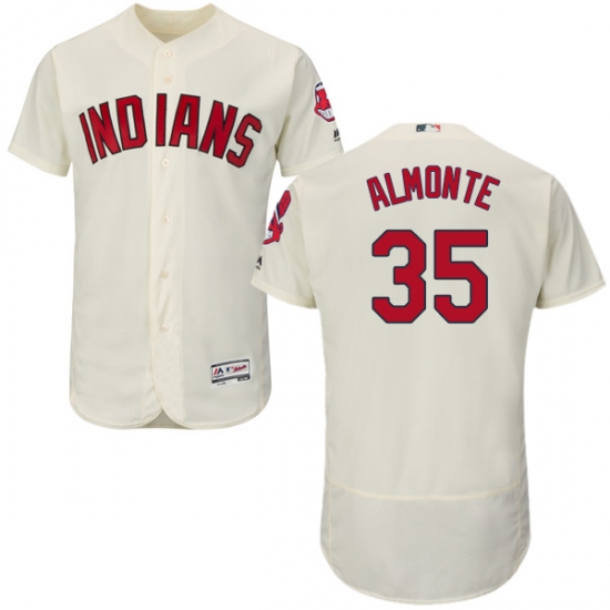 Home>MLB>Cleveland Indians>Abraham Almonte>Men's Majestic Cleveland Indians #35 Abraham Almonte Cream Alternate Flex Base Authentic Collection MLB Jersey