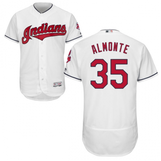 Home>MLB>Cleveland Indians>Abraham Almonte>Men's Majestic Cleveland Indians #35 Abraham Almonte White Home Flex Base Authentic Collection MLB Jersey