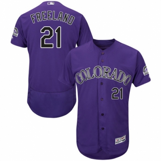 >Men's Majestic Colorado Rockies #21 Kyle Freeland Purple Alternate Flex Base Authentic Collection MLB Jersey