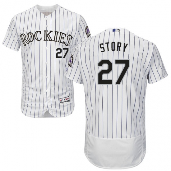 Home>MLB>Colorado Rockies>Trevor Story>Men's Majestic Colorado Rockies #27 Trevor Story White Home Flex Base Authentic Collection MLB Jersey