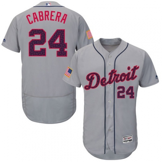 Men's Majestic Detroit Tigers #24 Miguel Cabrera Grey Fashion Stars & Stripes Flex Base MLB Jersey