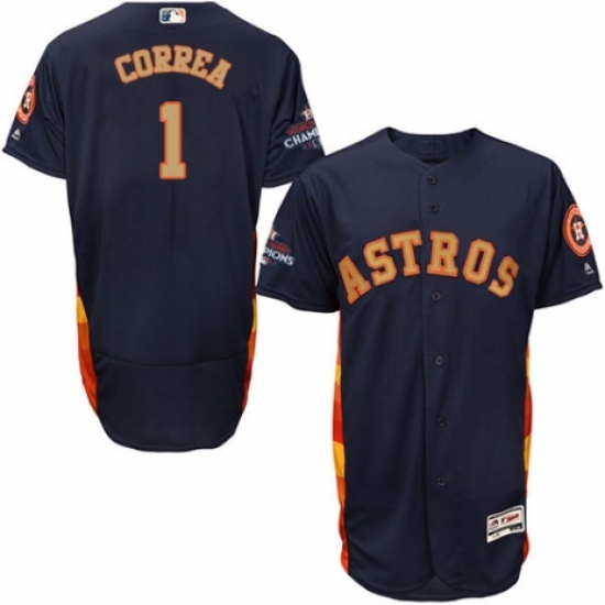 Men's Majestic Houston Astros #1 Carlos Correa Navy Blue Alternate 2018 Gold Program Flex Base Authentic Collection MLB Jersey