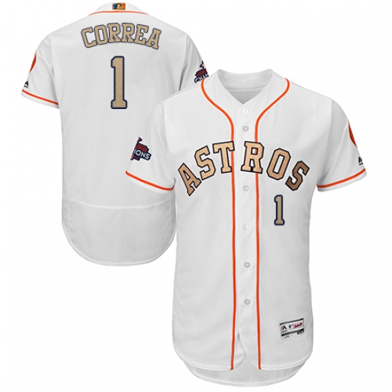 Men's Majestic Houston Astros #1 Carlos Correa White 2018 Gold Program Flex Base Authentic Collection MLB Jersey