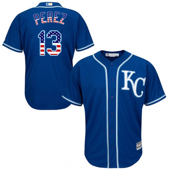 Men's Majestic Kansas City Royals #13 Salvador Perez Replica Royal Blue USA Flag Fashion MLB Jersey