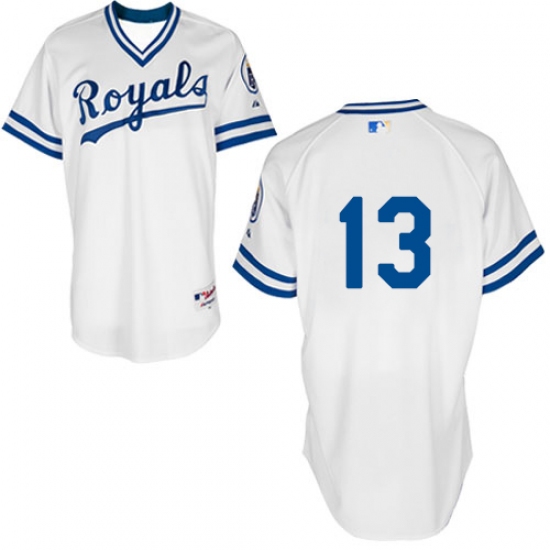 Home>MLB>Kansas City Royals>Salvador Perez>Men's Majestic Kansas City Royals #13 Salvador Perez Replica White 1974 Turn Back The Clock MLB Jersey