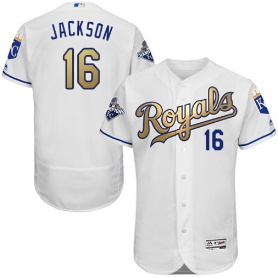 Home>MLB>Kansas City Royals>Bo Jackson>Men's Majestic Kansas City Royals #16 Bo Jackson Authentic White 2015 World Series Champions Gold Program FlexBase MLB Jersey