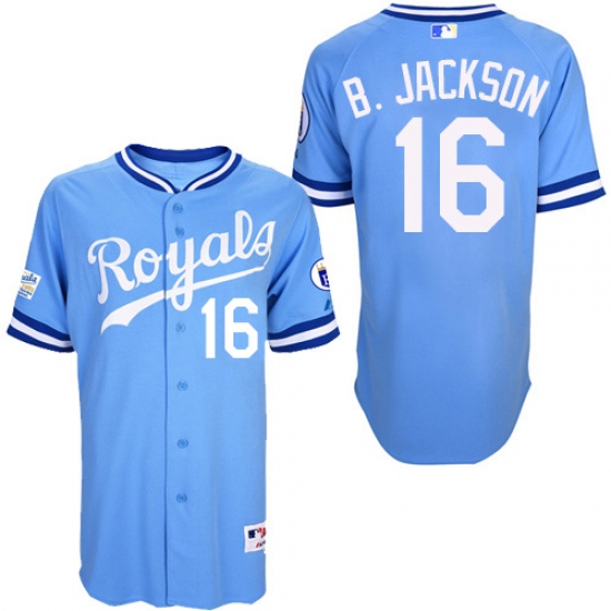 Men's Majestic Kansas City Royals #16 Bo Jackson Replica Light Blue 1985 Turn Back The Clock MLB Jersey