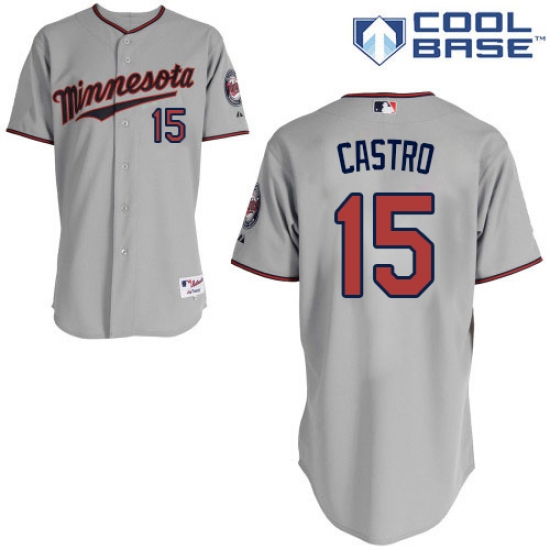 Men's Majestic Minnesota Twins #15 Jason Castro Replica Grey Road Cool Base MLB Jersey