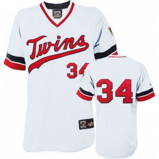 Men's Majestic Minnesota Twins #34 Kirby Puckett Replica White Cooperstown Throwback MLB Jersey