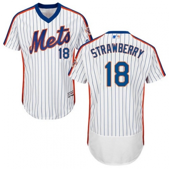 Men's Majestic New York Mets #18 Darryl Strawberry White Alternate Flex Base Authentic Collection MLB Jersey