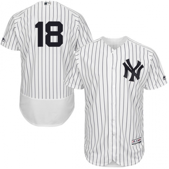 Men's Majestic New York Yankees #18 Don Larsen White Home Flex Base Authentic Collection MLB Jersey